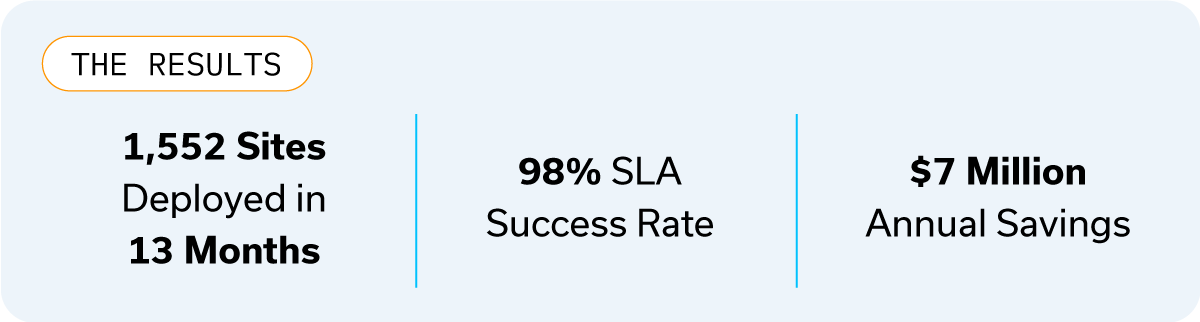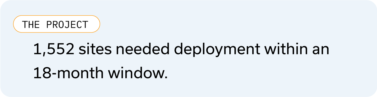 The project’s scale was unprecedented for INS: 1,552 sites needed deployment within an 18-month window. To manage such a large-scale rollout, INS divided the project into strategic phases: site surveys, installation scheduling, equipment staging, and cutover.