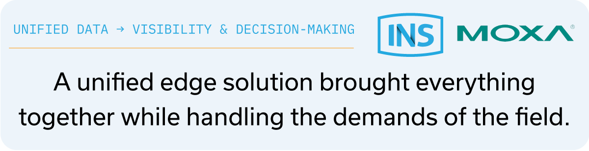 At the center was a Moxa hardware platform capable of handling the demands of the field—providing the compute power, memory, and connectivity needed to operate reliably in remote and often extreme environments. Just as importantly, it allowed the customer to consolidate multiple pieces of hardware into a single, more efficient footprint.