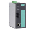 Moxa Industrial IEC 61850-3 and EN50155 approved Ethernet to Fiber media converter, 1x 100Mbps MM ST connector, 1x 10/100BaseT RJ45 connector, 88-300Vdc or 85-264Vac, -40 to 85 deg C, din-rail mount.