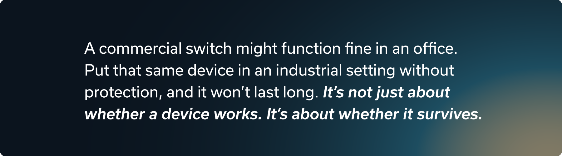 A commercial switch might function fine in an office. Put that same device in an industrial setting without protection, and it won’t last long.