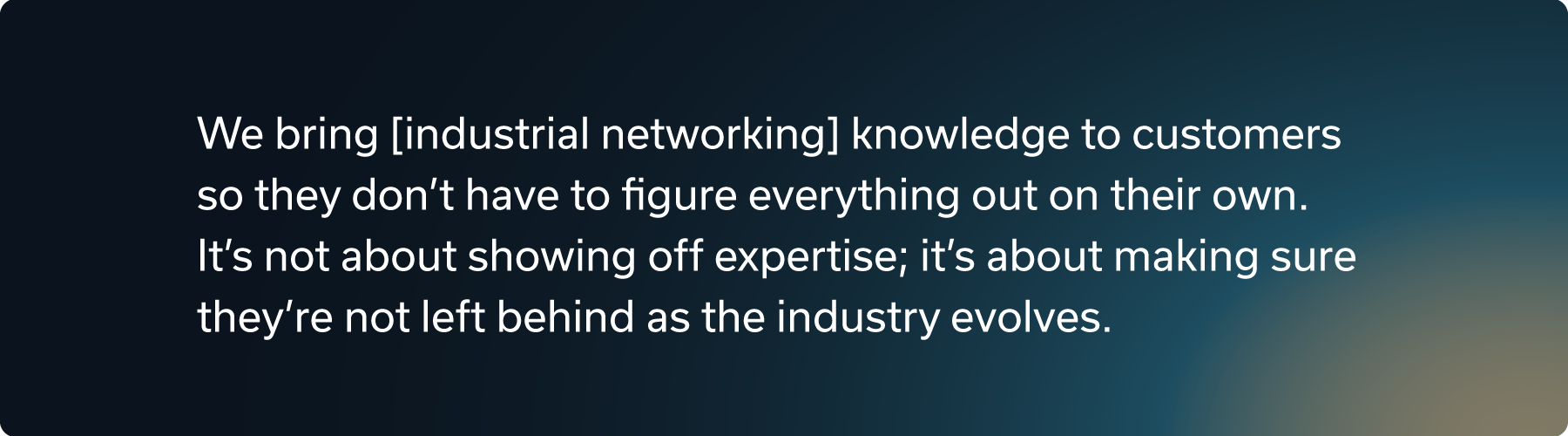 We bring that knowledge to customers so they don’t have to figure everything out on their own. It’s not about showing off expertise; it’s about making sure they’re not left behind as the industry evolves.